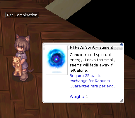 Should the pet egg combining process prove unsuccessful, you will be rewarded with 1 <mark style="color:purple;">Spirit Fragment</mark>. Upon amassing 25 <mark style="color:purple;">Spirit Fragments</mark> of a specific rarity, you can exchange them for 1 <mark style="color:green;">random Pet Egg</mark> of the corresponding rarity.